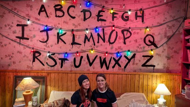 Next comes Will Byersโ living room. The glowing alphabet wall and cozy couch are recreated with impressive accuracy, and visitors can take their time with photos.
