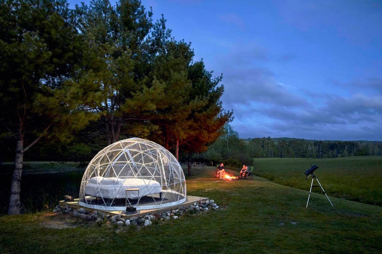 Experience stunning 360-degree views in these unique glamping domes in Jefferson, Maine from $125 per night during peak summer dates.