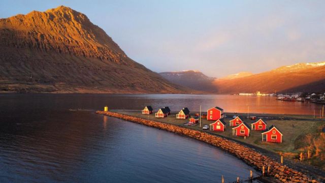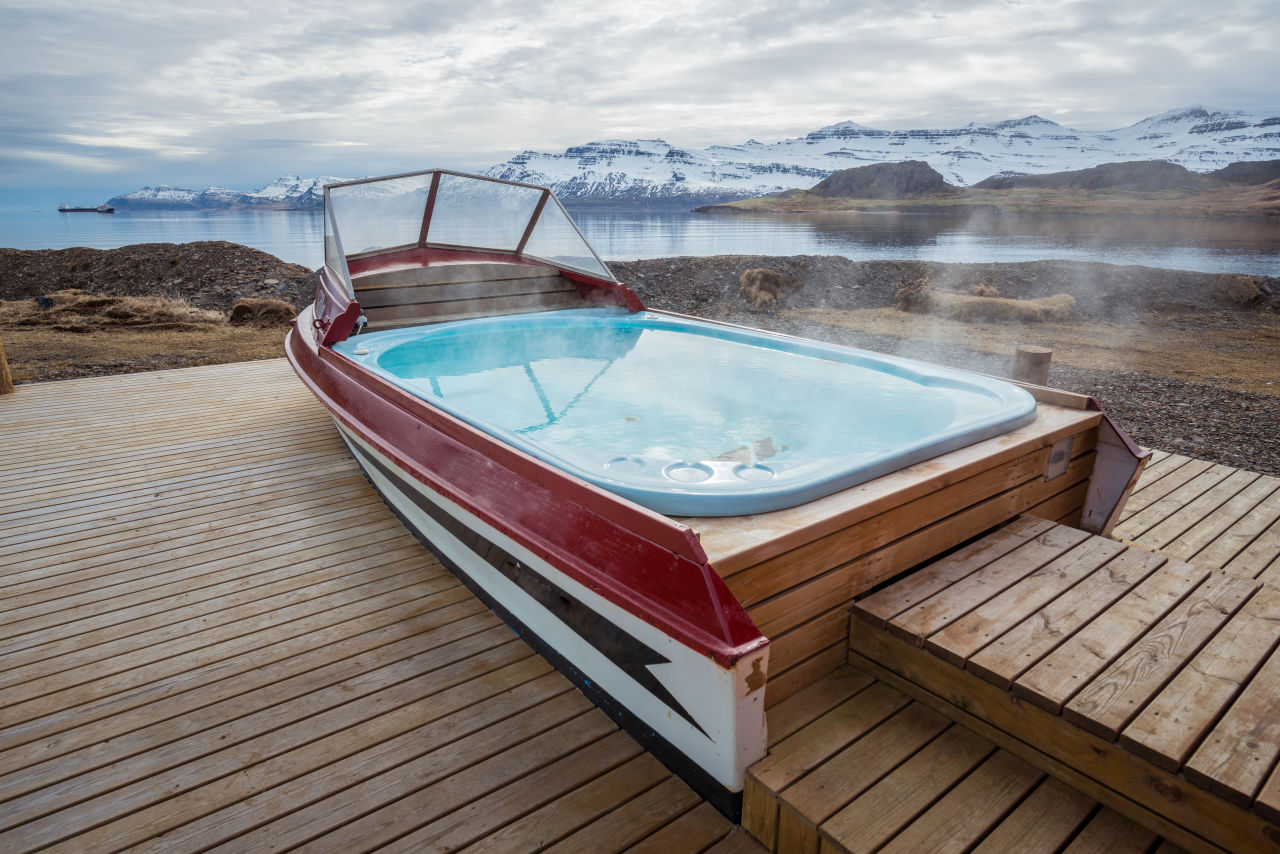 In the east of Iceland is the award-winning (4.6/5 on Tripadvisor & Winner of the 2025 Travelers' Choice Awards) Mjóeyri Cottages. These cozy cottages are set in the most breathtaking scenery and offer a sauna, as well as a unique hot tub experience inside a beachfront, boat-shaped, geothermal-heated tub.