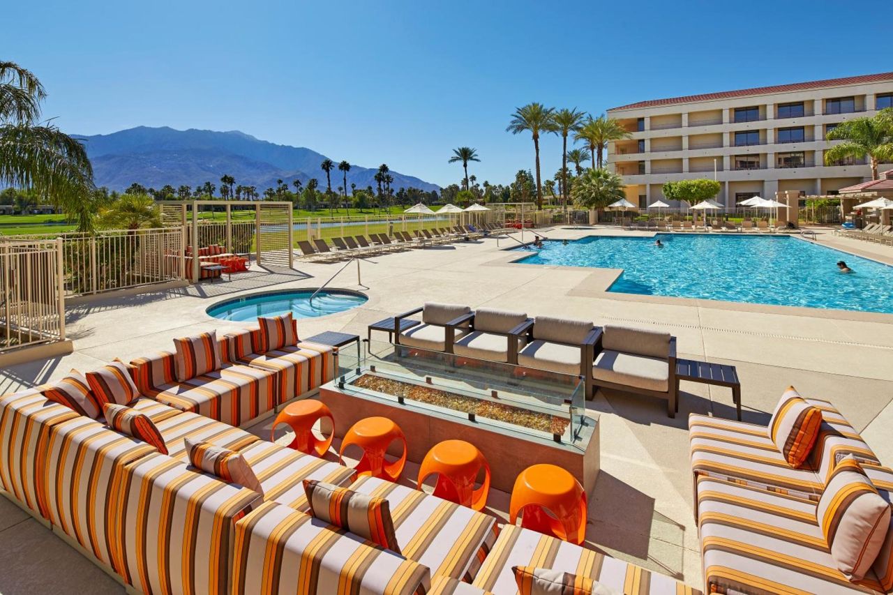 Every room in the resort features a patio or balcony overlooking the lake and the iconic San Jacinto Mountains. The resort also offers a 27-hole championship golf course, an Olympic-sized swimming pool, a full spa, an on-site restaurant, and a bar.