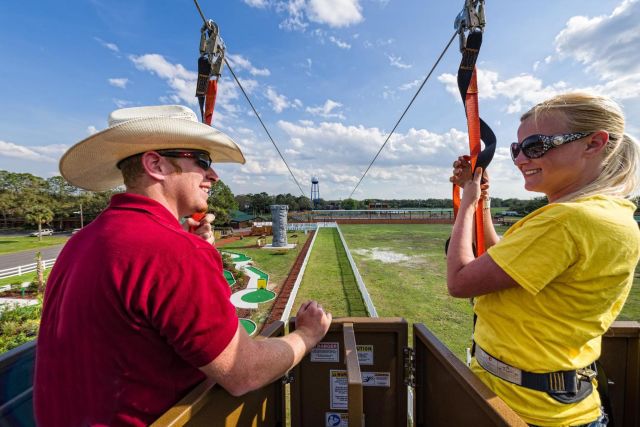 The resort sits on 1,700 acres and features a water park, an adventure park with zip lines, rock-climbing walls, and mini-golf; plus airboat rides, horseback riding, authentic rodeos every Saturday, and plenty more that I could spend all morning listing.