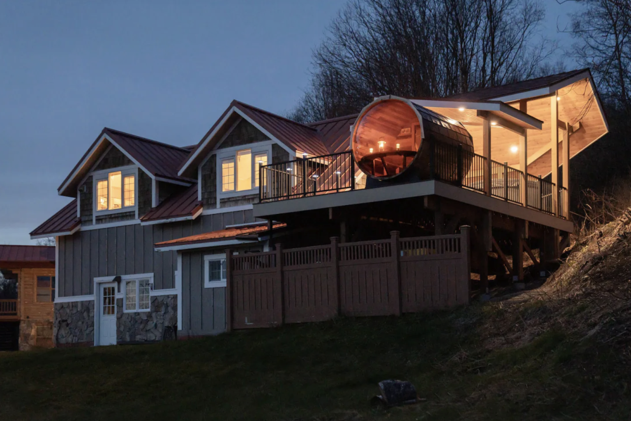 This Airbnb in Palmer, Alaska is less than an hour's drive outside of Anchorage. It overlooks the beautiful Matanuska-Susitna Valley. The best part about your stay here is the incredible covered deck with a barrel sauna and hot tub that overlooks Mat-Su Valley. The accommodation fits up to six guests and we've found rates starting from $275 a night.
