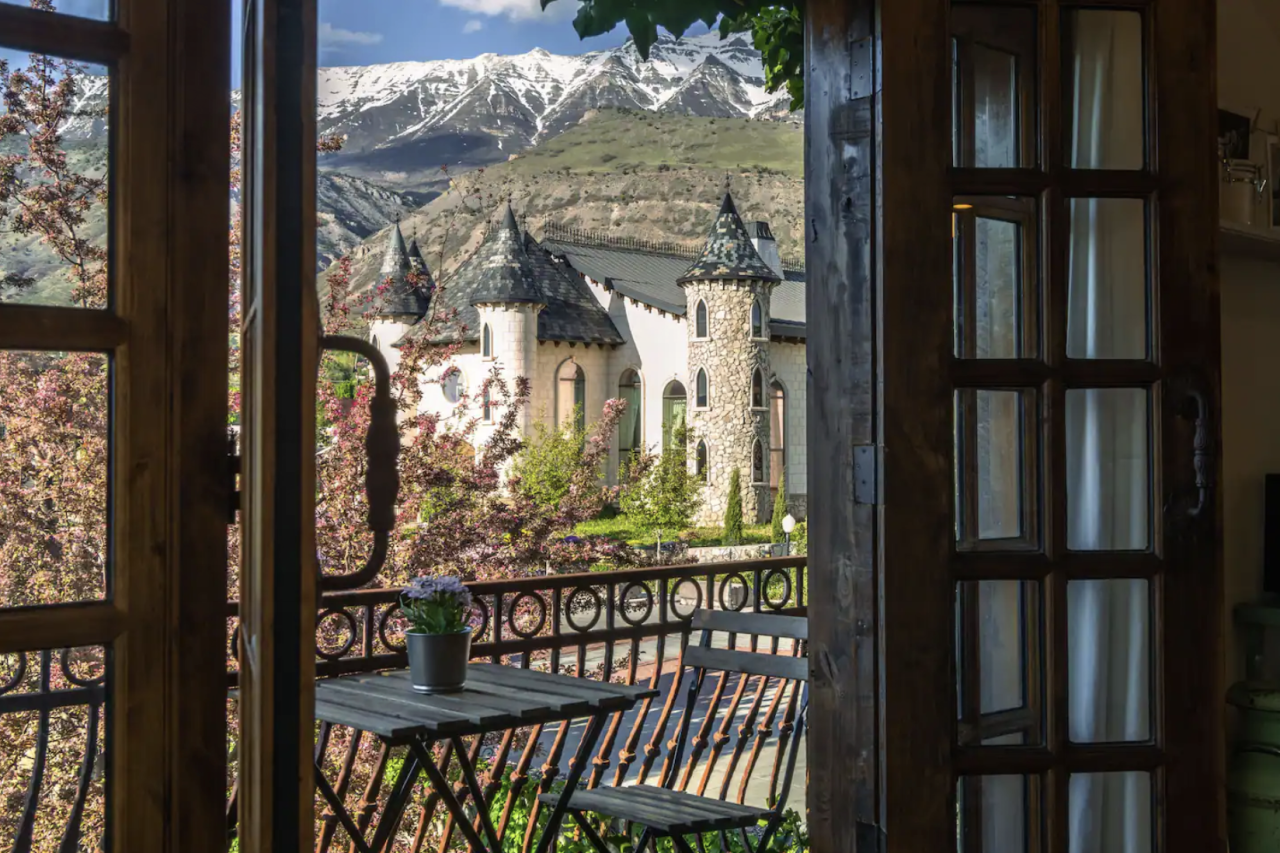 At first glance you may think the images above and below are of a storybook village in Europe, however, this beautiful rustic loft is on a farm and vineyard located not too far from Salt Lake City with an around 37 minute drive south.