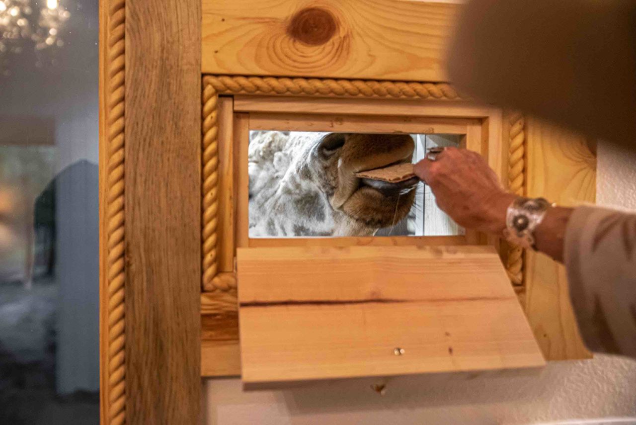 Pirates, have you ever dreamed of waking up to the gaze of a giraffe? At this Texas suite inspired by the legendary 6666 Ranch, you can stay right next to 'Puzzles' the Giraffe and even feed him from your private balcony!