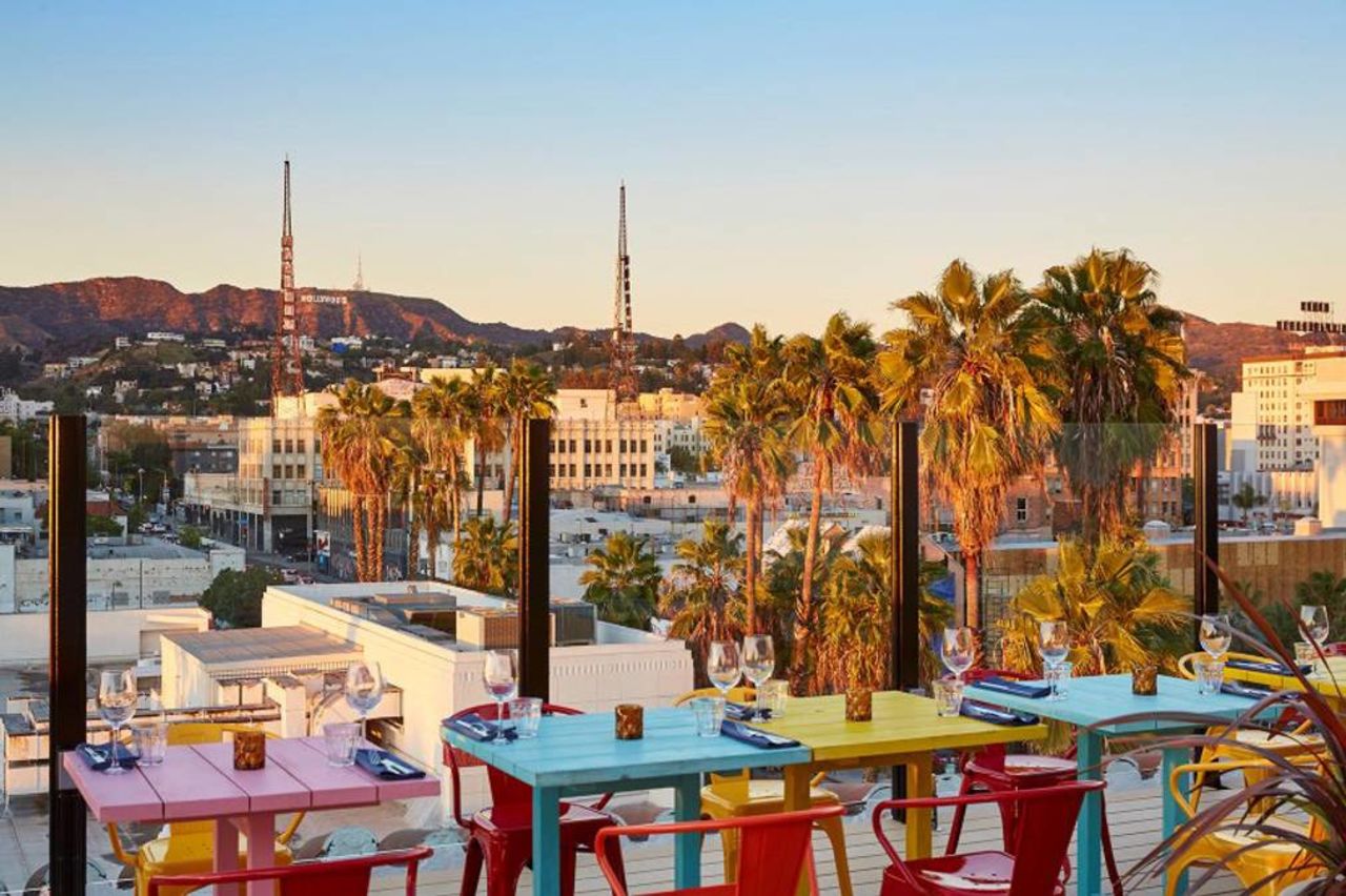 Stay in the 4-star Mama Shelter Los Angeles (4/5 on TripAdvisor) and you'll see why this might just be the coolest hotel in LA. This design hotel boasts an ideal location overlooking Hollywood Boulevard, stylish rooms with top quality bedding and a wide selection of free movies (including X-rated), free events, and of course, their iconic rooftop bar.