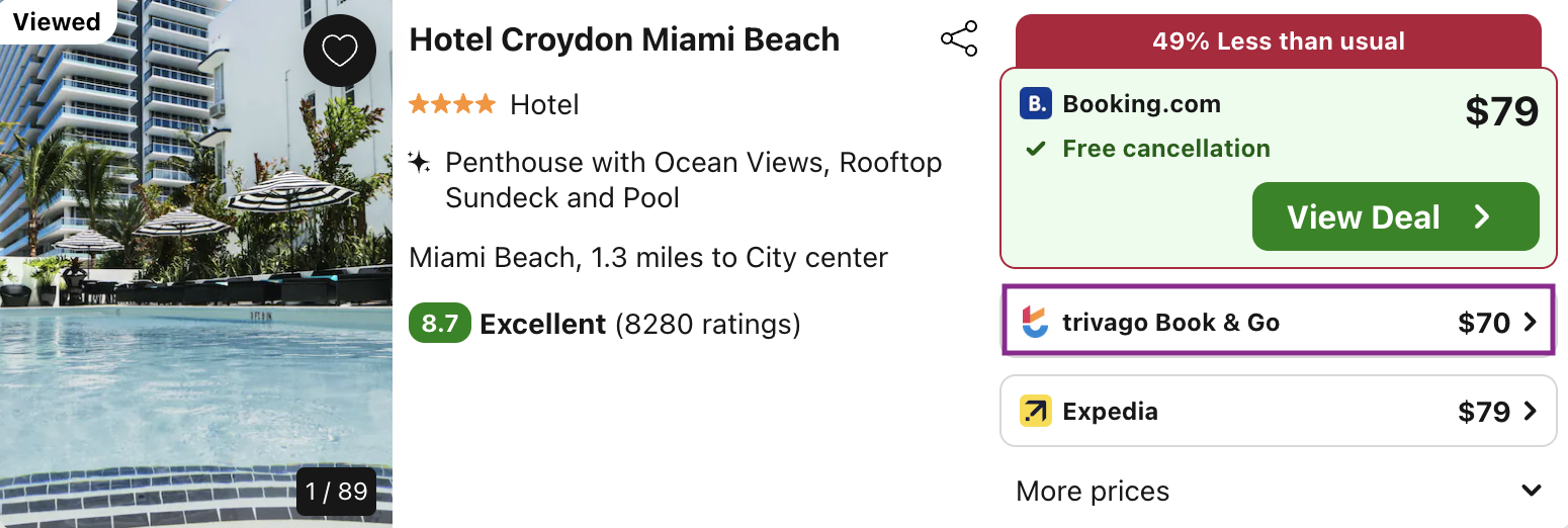 Pirate Tip 🏴☠️️: select the lowest price option on Trivago to get the best deal.