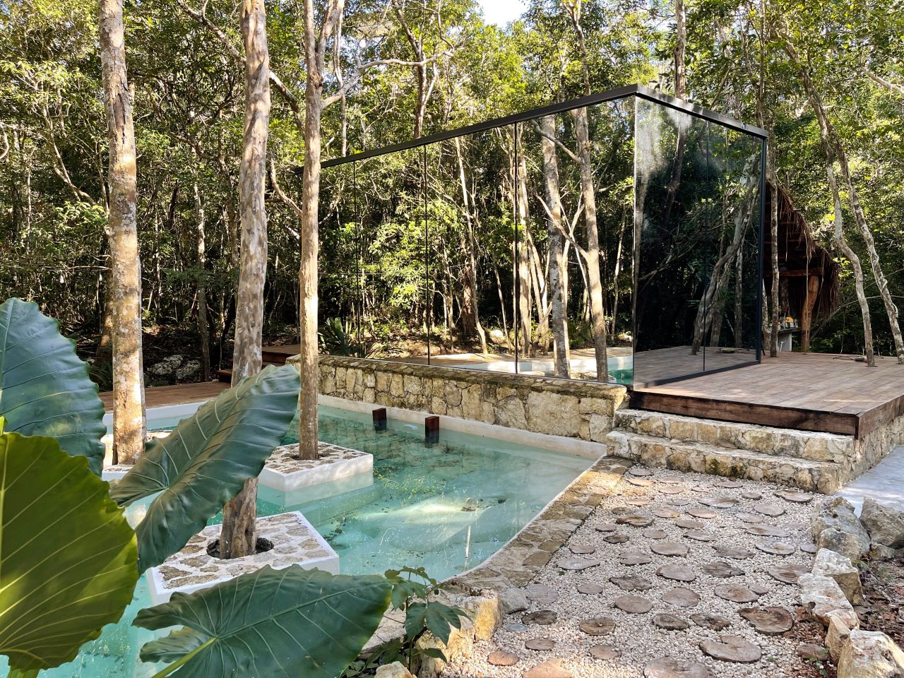 You will also find an outdoor kitchen, a fire pit, a chukum rock pool, and a viewing platform sitting above the tree canopy.